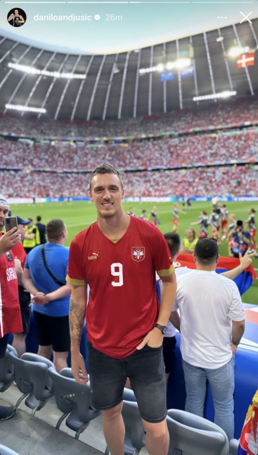 Podrška fudbalerima stiže i iz sveta košarke, a na licu mesta je Danilo Anđušić u dresu sa brojem 9.