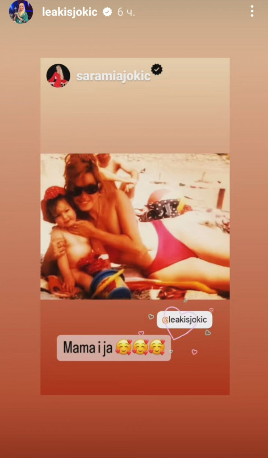 U sezoni godišnjih odmora voditeljka se prisetila letovanja od pre dve i po decenije, pa je sa pratiocima na Instagramu podelila fotografiju na kojoj je sa ćerkom. Sara je na slici mala devojčica, a njena mama prezgodna mlada žena u crvenom bikiniju.