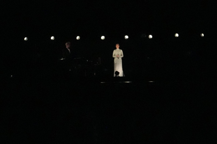 Svi reflektori i oči bili su upreti u nju, a ona je elegantno stajala i pevala iz duše na francuskom jeziku numeru "L’Hymne à l’amour" na Ajfelovom tornju.