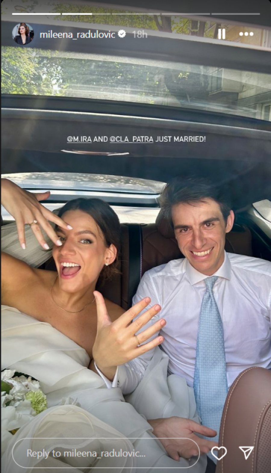Milena je na svom Instagramu podelila video sa događaja uz simpatičan opis: "Stiže kuma". Kasnije je objavila sliku mladenaca i fotografiju sa Ognjenom uz komentar: "I kumovi kidaju".
