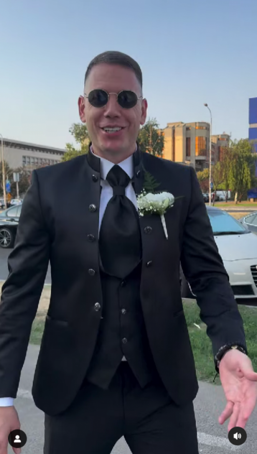 Mladoženja je blistao u potpuno crnom smokingu dok naočare sa lica koje je uklopio uz stajling nije skidao do ulaska u restoran.