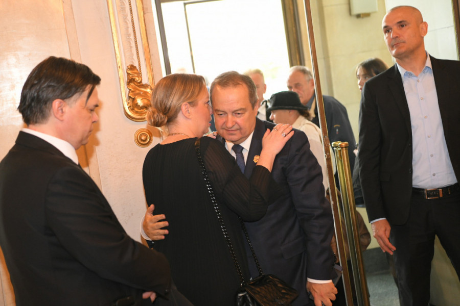 U Narodnom pozorištu vlada muk, a u publici je i ministar kulture Nikola Selaković. Takođe, od kolega su prisutni i Igor Đorđević, Pavle Jerinić, Dragana Varagić i Stefan Buzurović.