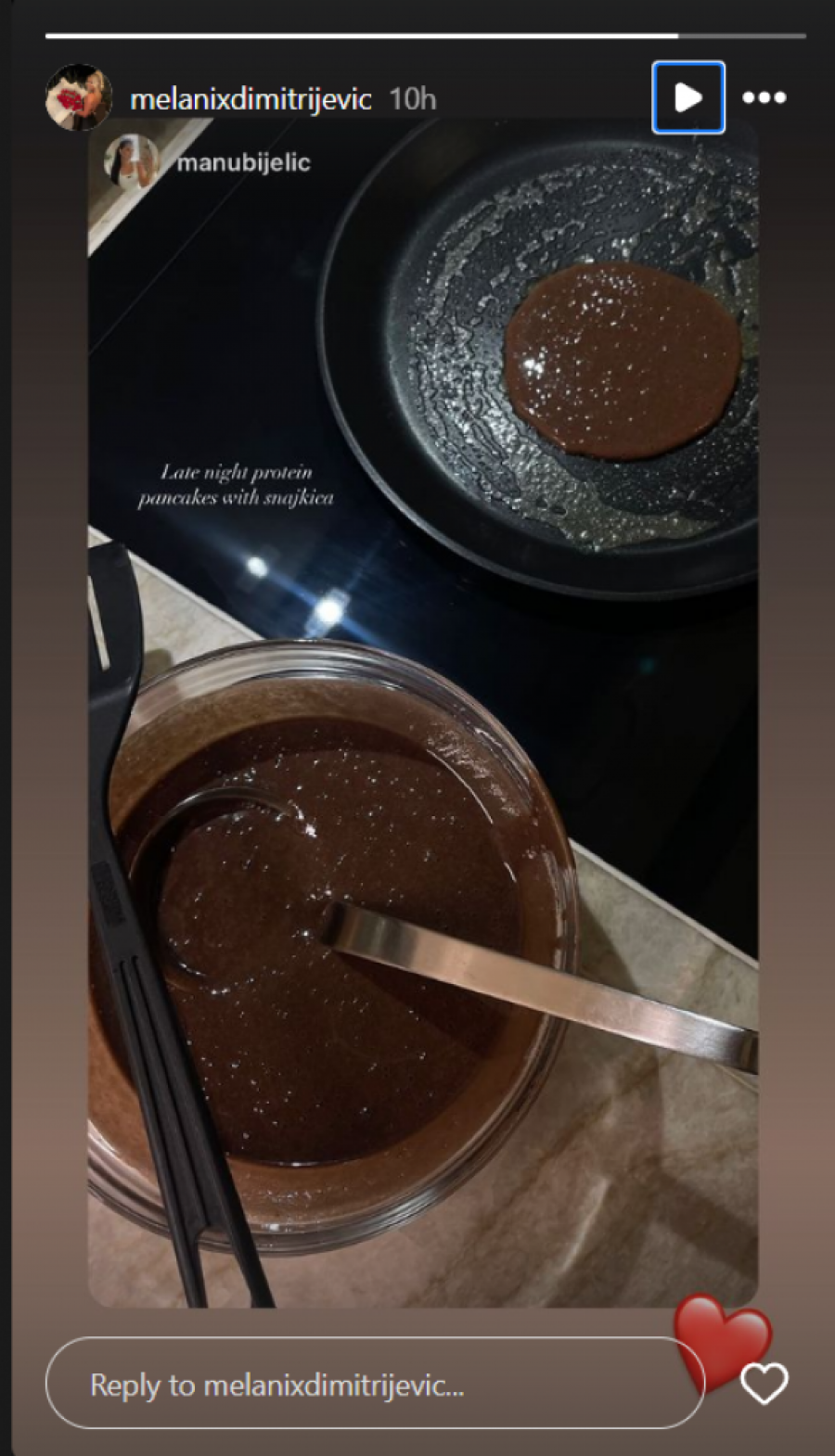 - Kasna večera - proteinske palačinke sa snajkicom - napisala je ćerka Dragane Mirković.