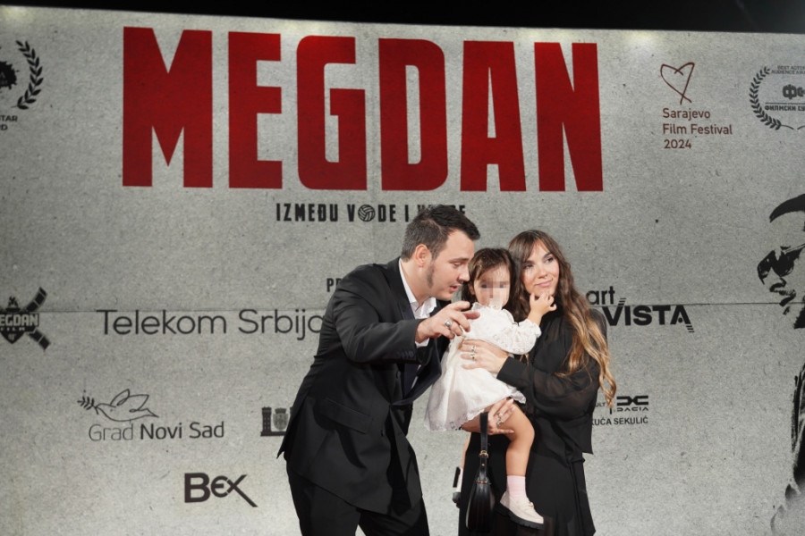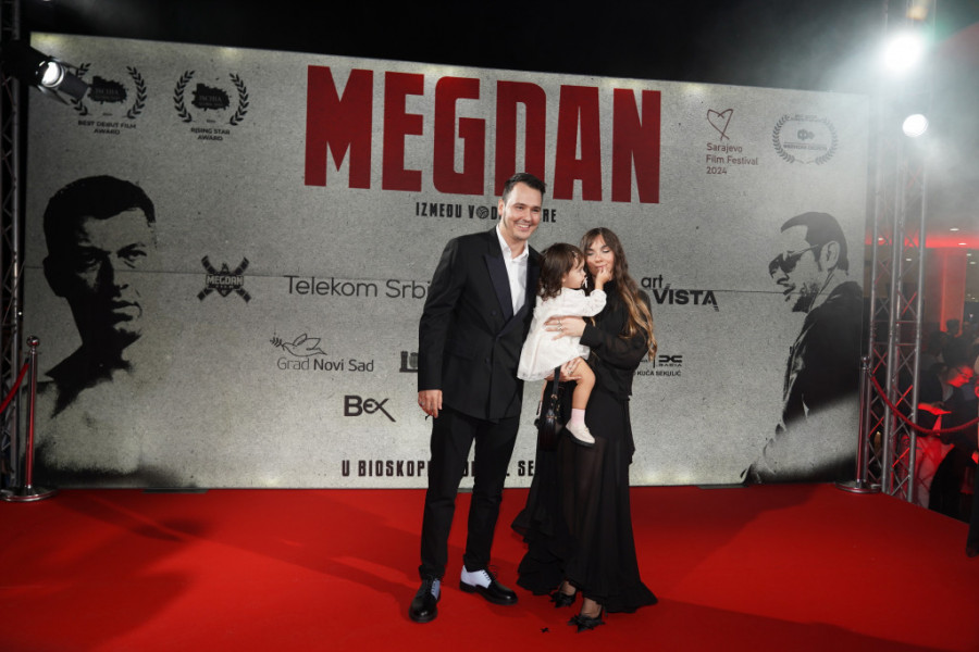 Nakon što su najavljeni kao da zaista ulaze u ring, crvenim tepihom je prošetala glumačka i autorska ekipa, ali i Aleksa sa suprugom Nikolinom i ćerkicom Verom, koja je očarala sve prisutne.