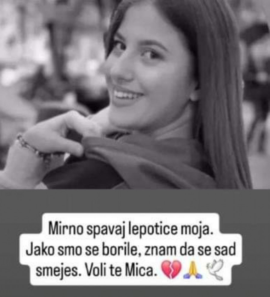 - Mirno spavaj, lepotice moja. Jako smo se borile, znam da se sad smeješ. Voli te Mica - napisala je pevačica.