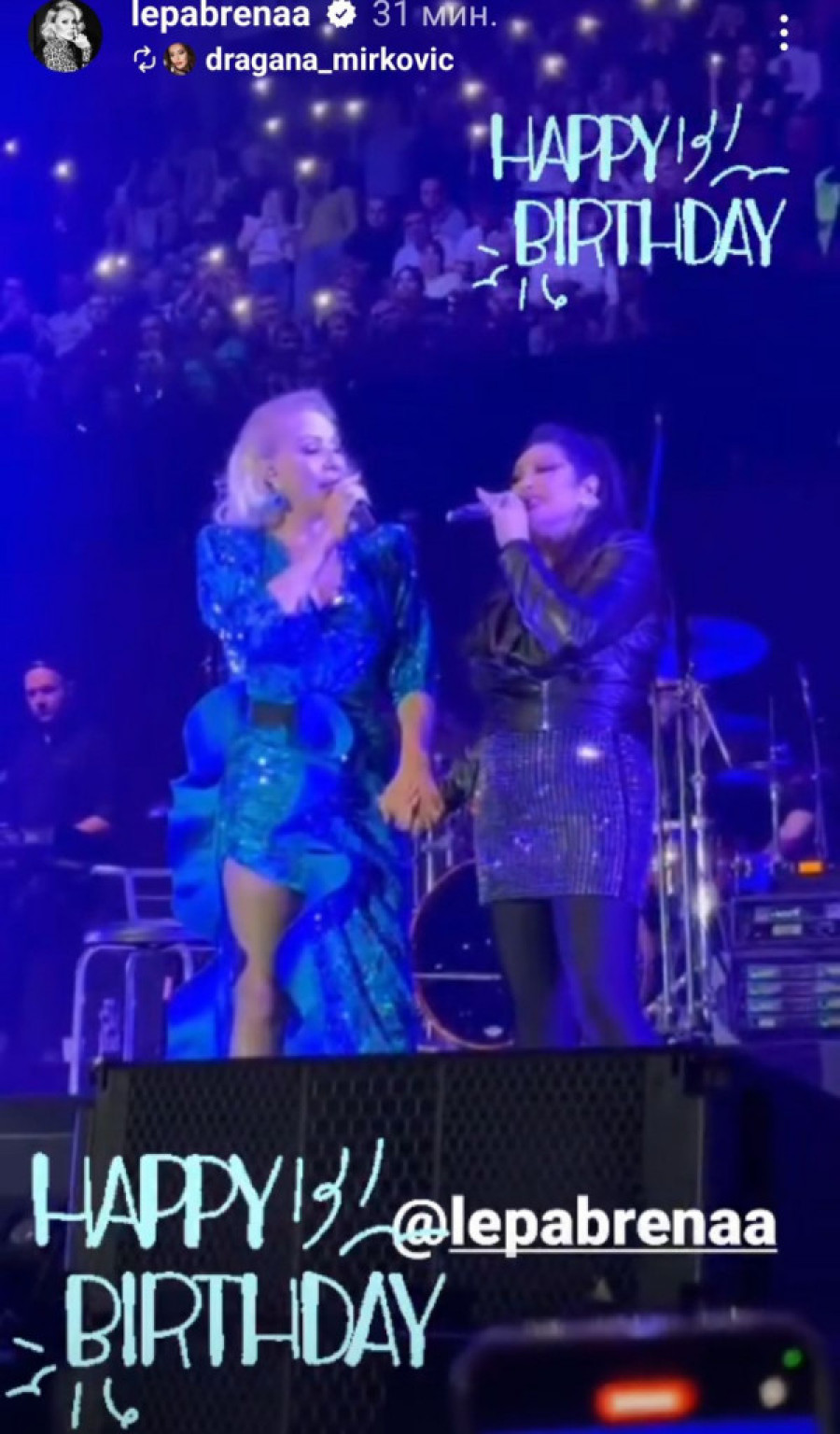 Čestitka je stigla i od Dragane Mirković, koja je objavila snimak sa zajedničkog nastupa, uz poruku “Happy birthday”.