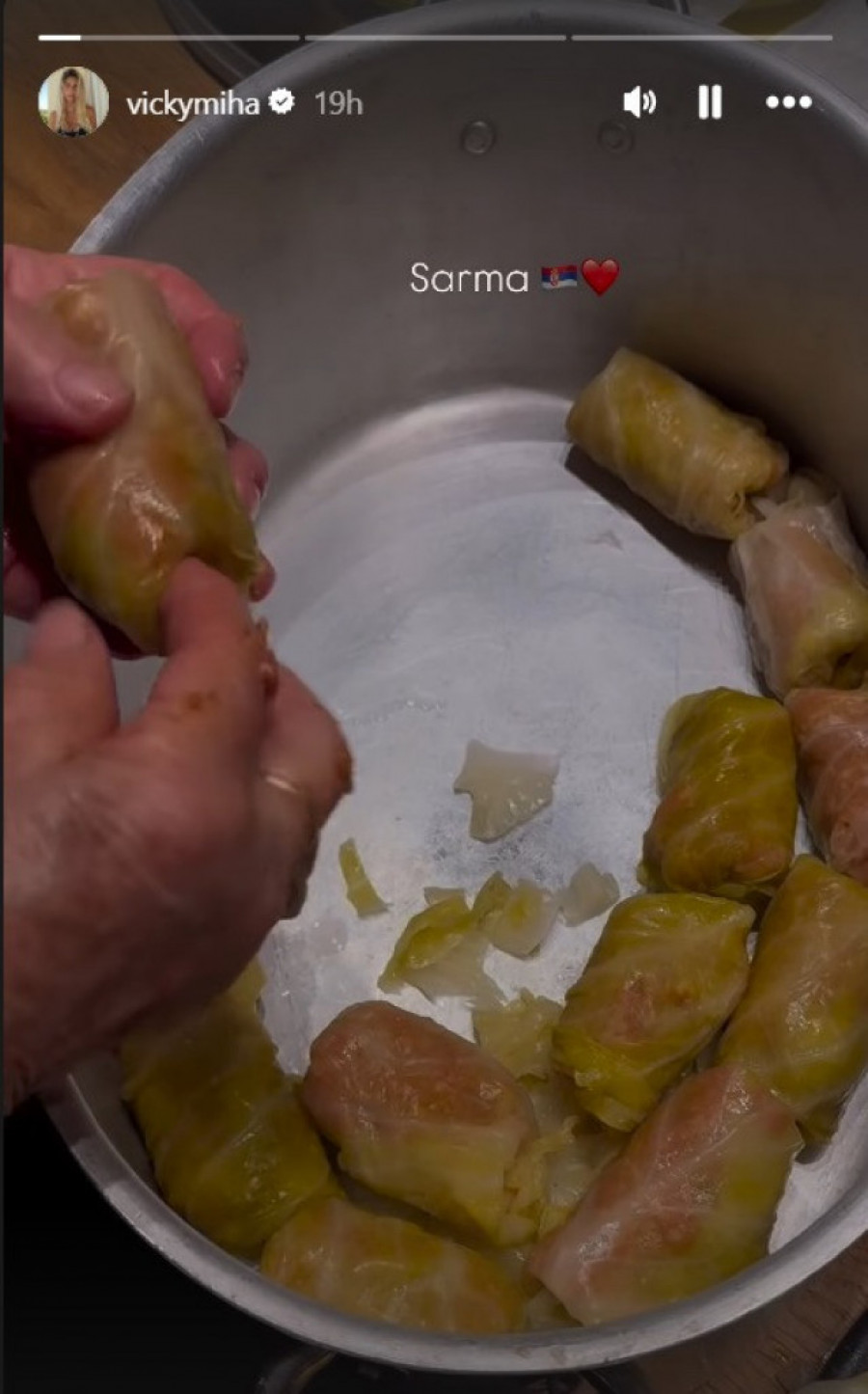 Njena imenjakinja Viktorija, starija Sinišina ćerka, podelila je na Instagramu snimak kako baka zavija sarme, jelo koje obožavaju svi Mihajlovići.