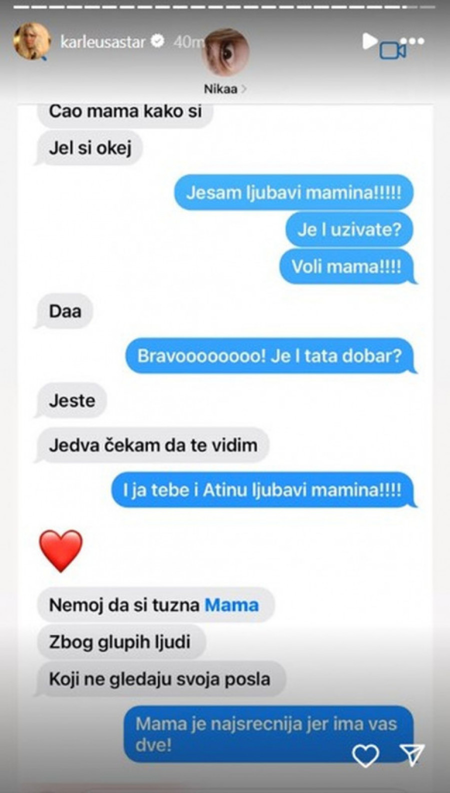 Nika je zatim mami uputila reči podrške sa željom da se ne brine zbog ljudi koji se mešaju u tuđe živote.