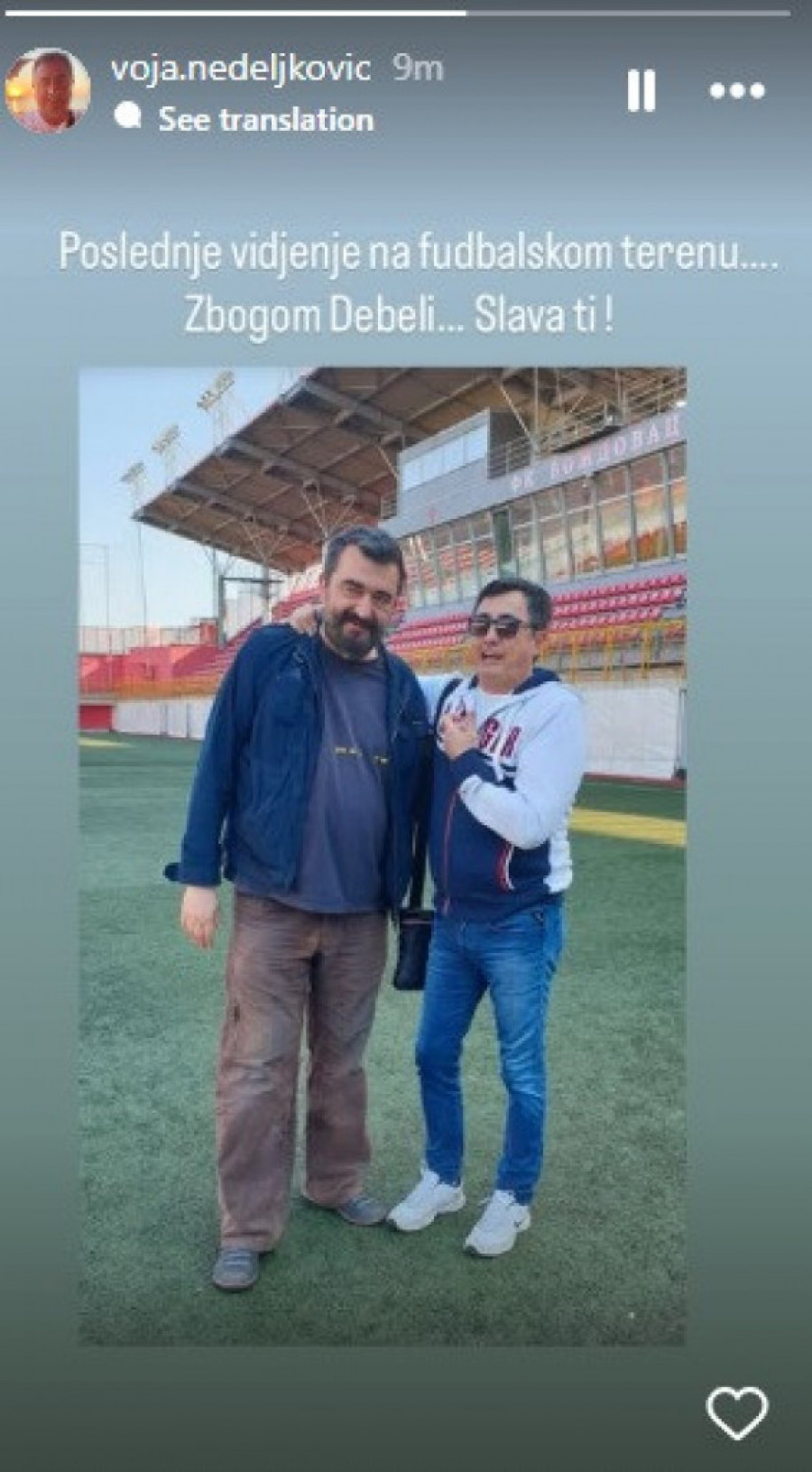 - Zbogom Debeli, slava ti! - napisao je Voja uz fotografiju na fudbalskom terenu sa preminulim Miloradom Milinkovićem.