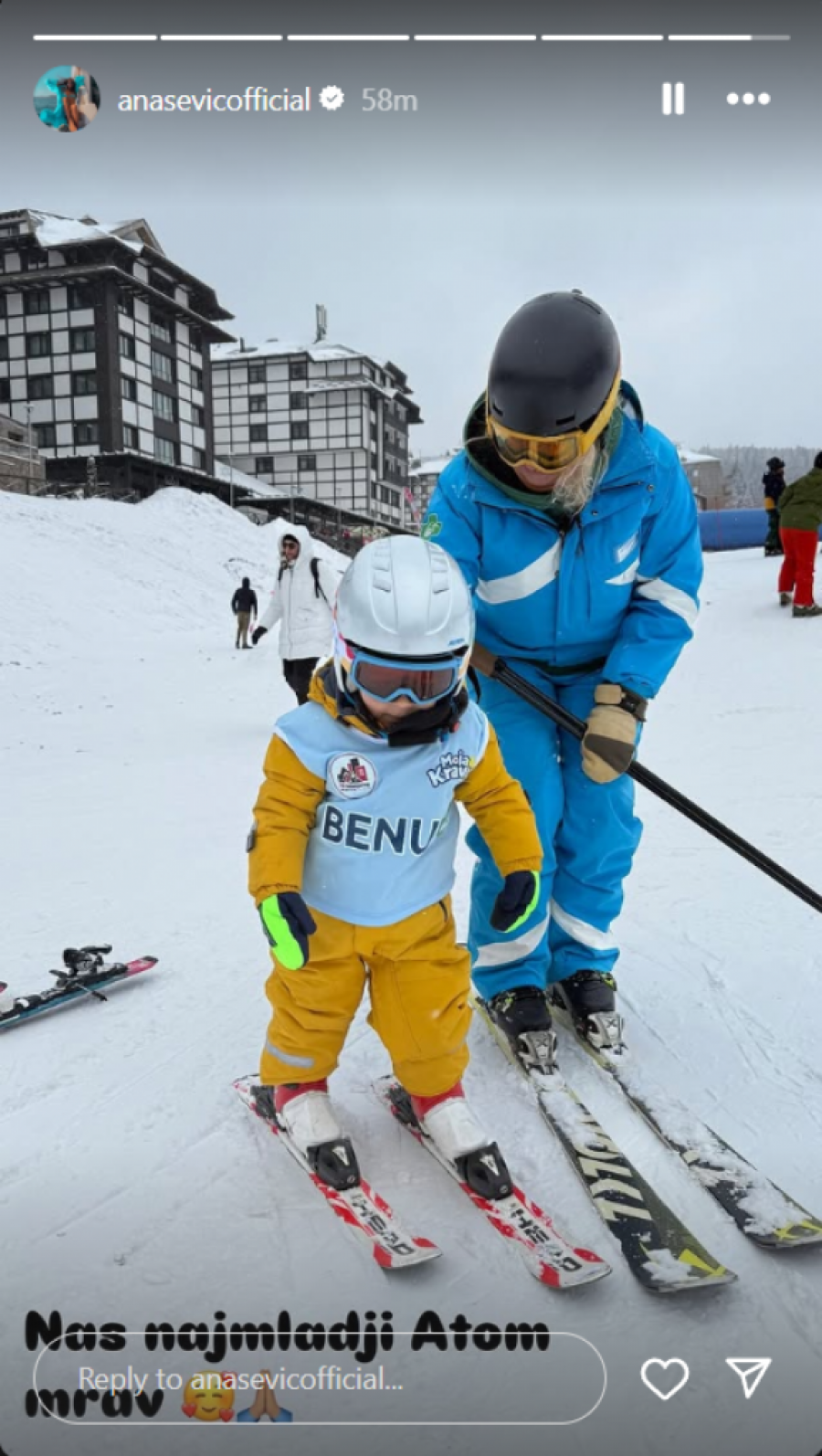 Pevačica je podelila fotografiju sa staze uz opis "Naš najmlađi Atom mrav" a na slici možemo videti kako Simeon uz pomoć instruktorke savladava osnove skijanja.