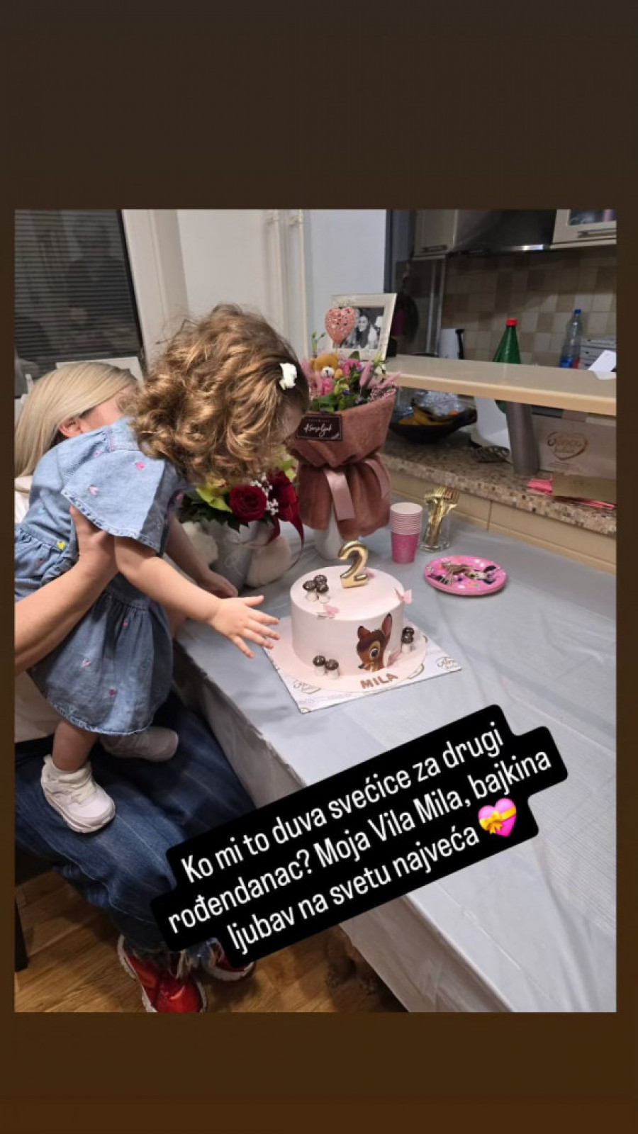 "Anđele naš, pahuljice, živote, srećan ti divan dan! Pre dve godine si poput pera sletela u naše ruke, obojila nam život najlepšim bojama i sa sobom donela ljubav za koju nismo znali da postoji.
