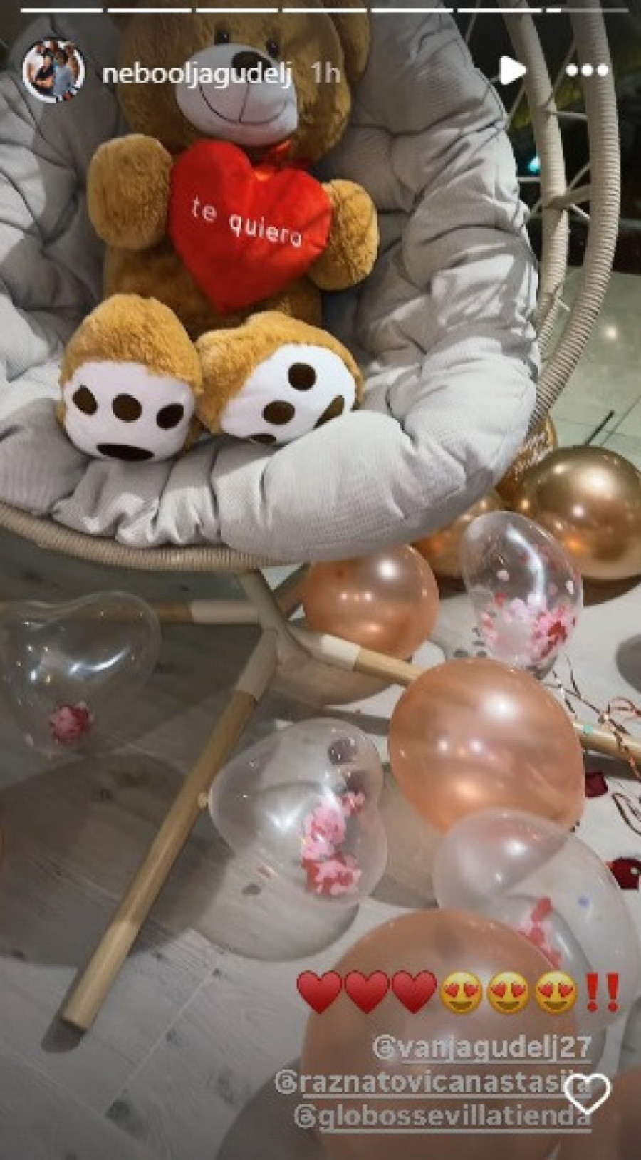 Olivera je od snaje dobila balone punu prostoriju, plišanog medu koji je u rukama držao srce na kome piše: "Volim te".