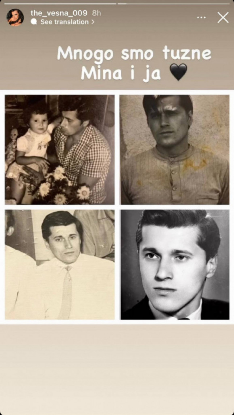 "Zbogom, tata. Mnogo smo tužne Mina i ja", dodala je uz kolaž fotografija i istakla da je i ćerku Minu koju je dobila u braku sa poznatim muzičarem pogodilo što je izgubila dedu.