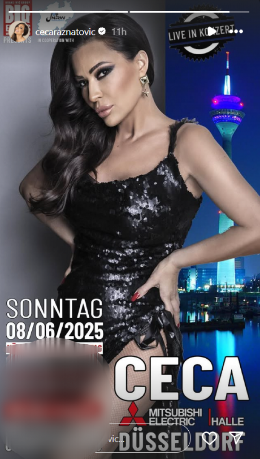Karte su već skoro pa rasprodate, te nas ne bi iznenadilo da se otvori još neki termin za spektakl u Dizeldorfu, a do tada je Ceci bukiran raspored jer će turneju održavati kako u našoj zemlji tako i po Balkanu.