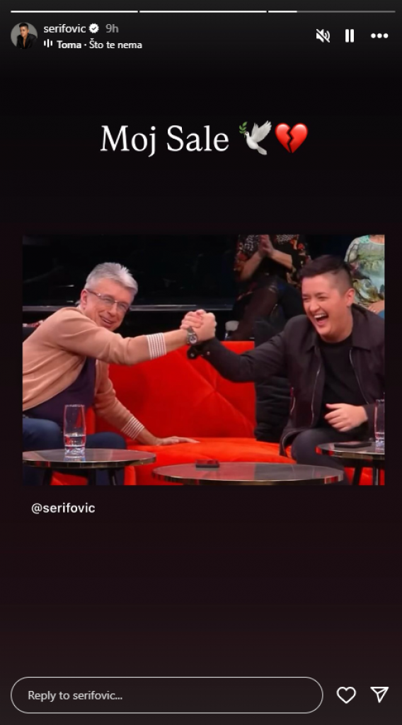 - Sale moj, jedan post je malo da napišem sve što mislim i osećam u ovom trenutku. Mislila sam da nikada neću pisati ovaj tekst. Bio si zvezda vodilja na ovom našem nebu, bio si drug, bio si ortak, bio si veliko srce, bio si i jesi Čovek i Umetnik čiji je osmeh uvek umeo da slomi ovu Škorpiju. Samo tebi nisam nikada mogla da kažem - ne. Hvala na svemu što si za mene uradio. Odmori se. Ostaćeš zauvek deo ove duše! - napisala je Šerifović.