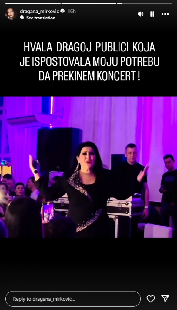 Dragana Mirković prekinula je koncert, ali se pevačica sa emotivnom porukom oprostila od Popovića i na društvenim mrežama.