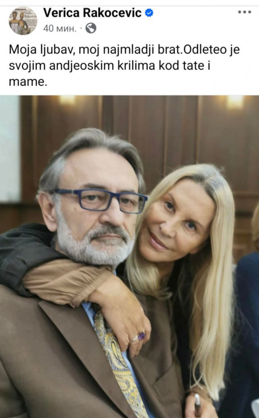 Moja ljubav, moj najmlađi brat. Odleteo je svojim anđeoskim krilima kod mame i tate – poručila je kreatorka u objavi na društvenoj mreži Facebook.