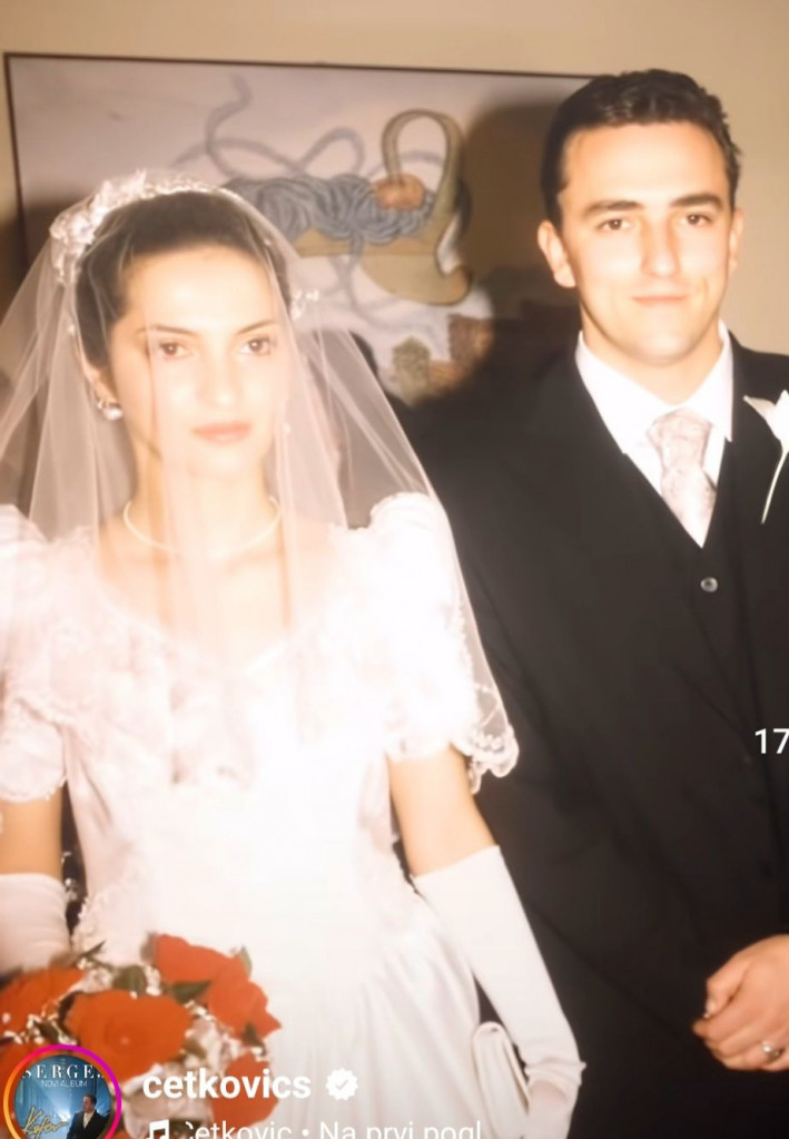 Povodom godišnjice braka Sergej Ćetković je objavio i, javnosti nepoznate, fotografije sa venčanja, na kojima je nosio klasično crno odelo, dok je mlada imala dugu elegantnu venčanicu, veo i rukavice.