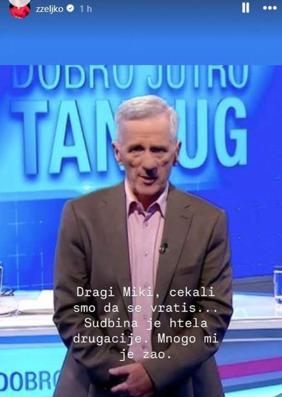 - Dragi Miki, čekali smo da se vratiš... Sudbina je htela drugačije, mnogo mi je žao - napisao je Željko koji je uspešno i sarađivao sa Komrakovim dugi niz godina. Podsećamo, Milorad je radio kao voditelj Jutarnjeg programa na televiziji "Tanjug".