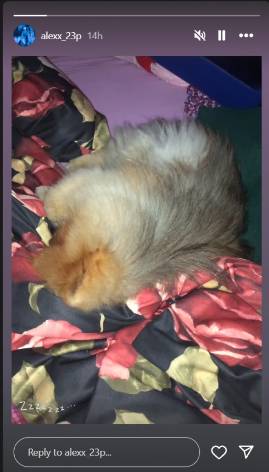 Na snimku, koji je nastao u njenoj spavaćoj sobi, vidi se njen pas kako spava pored nje, a upravo taj prizor raznežio je mnoge koji su ga videli. Pas joj, kako se može zaključiti, pravi društvo i pruža ogromnu utehu u teškim trenucima kroz koje prolazi nakon gubitka oca.