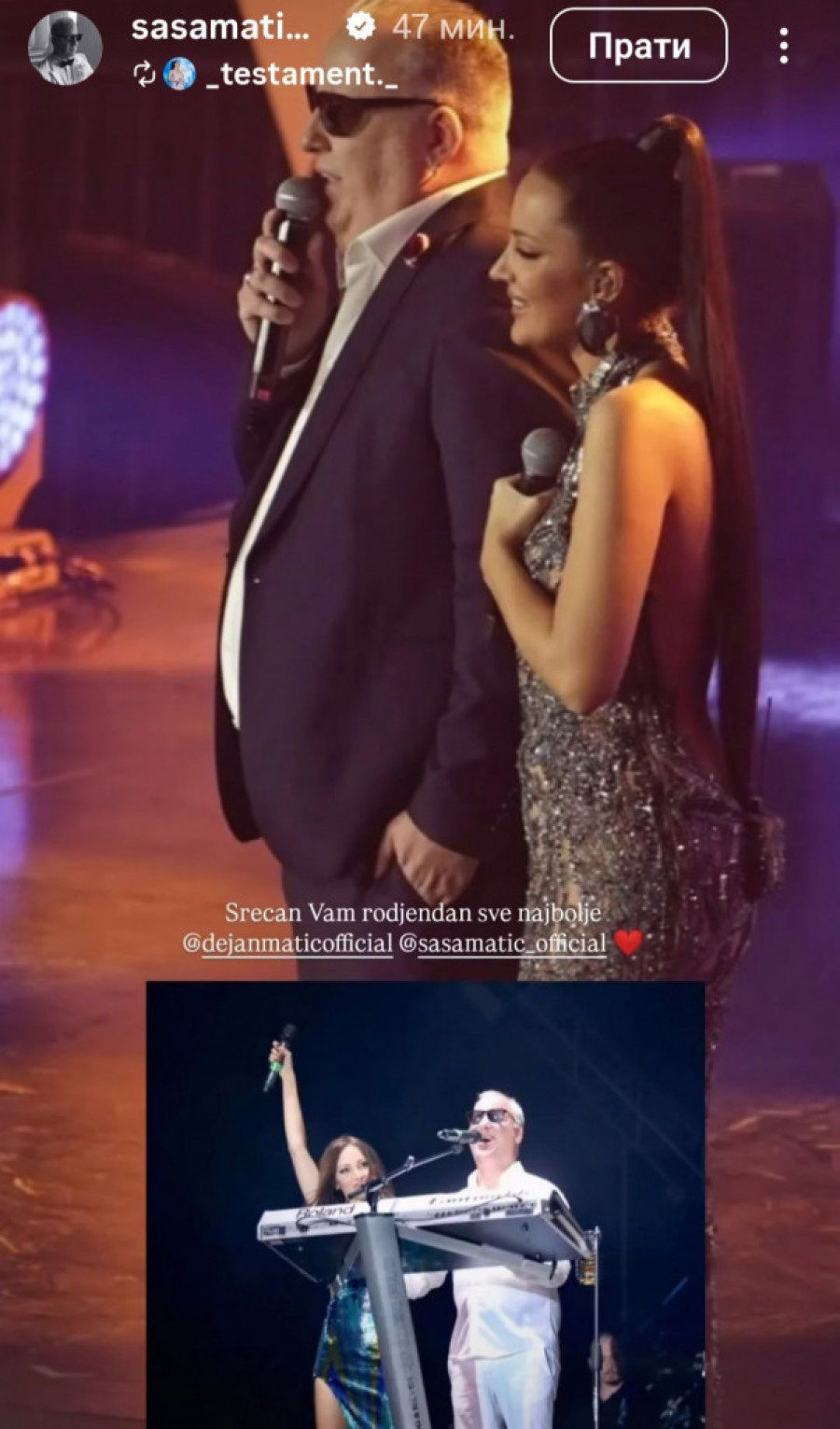 Za razliku od Saše koji je na svom Instagram profilu objavio čestitke koje su pristigle kako od kolega tako i od pojedinih medija, Dejan je podelio je snimke sa nastupa.