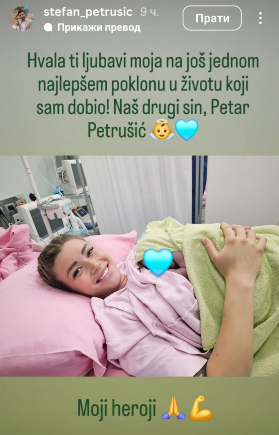 "Hvala ti, ljubavi moja, na još jednom najlepšem poklonu u životu koji sam dobio,", napisao je Stefan, pa otkrio da se drugi sin zove Petar Petrušić.