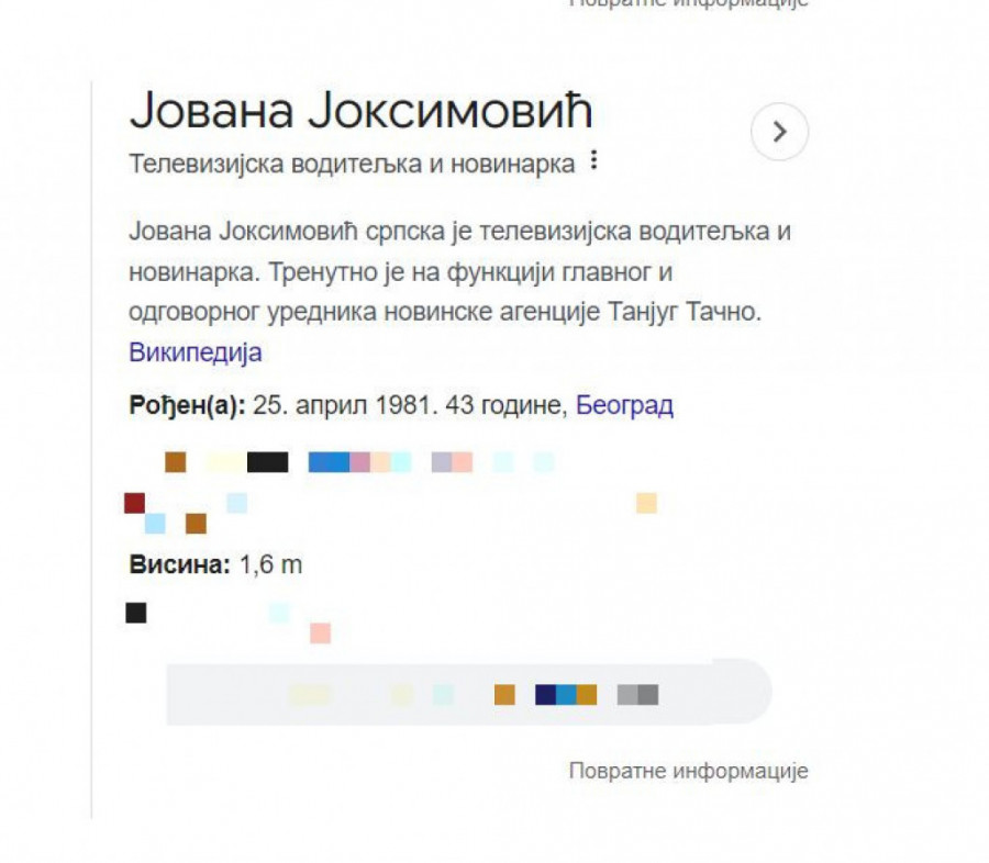 Ako u Guglu ukucate "koliko je Jovana Joksimović visoka", dobićete podatak sa Vikipedije koji nije tačan.