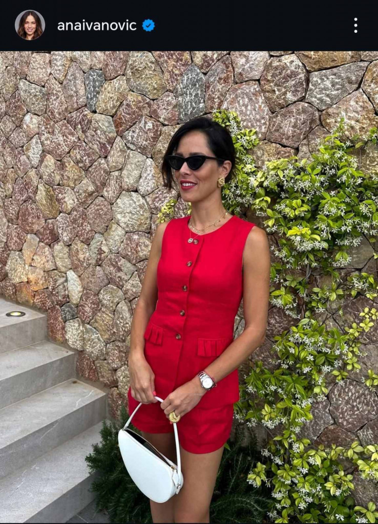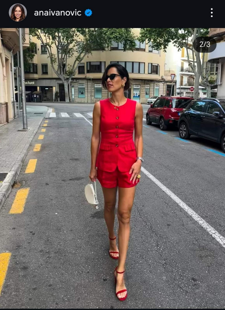 Na najnovijim fotografijama koje je podelila sa pratiocima, Ana blista u crvenom lanenom kompletom koji joj stoji kao saliven.