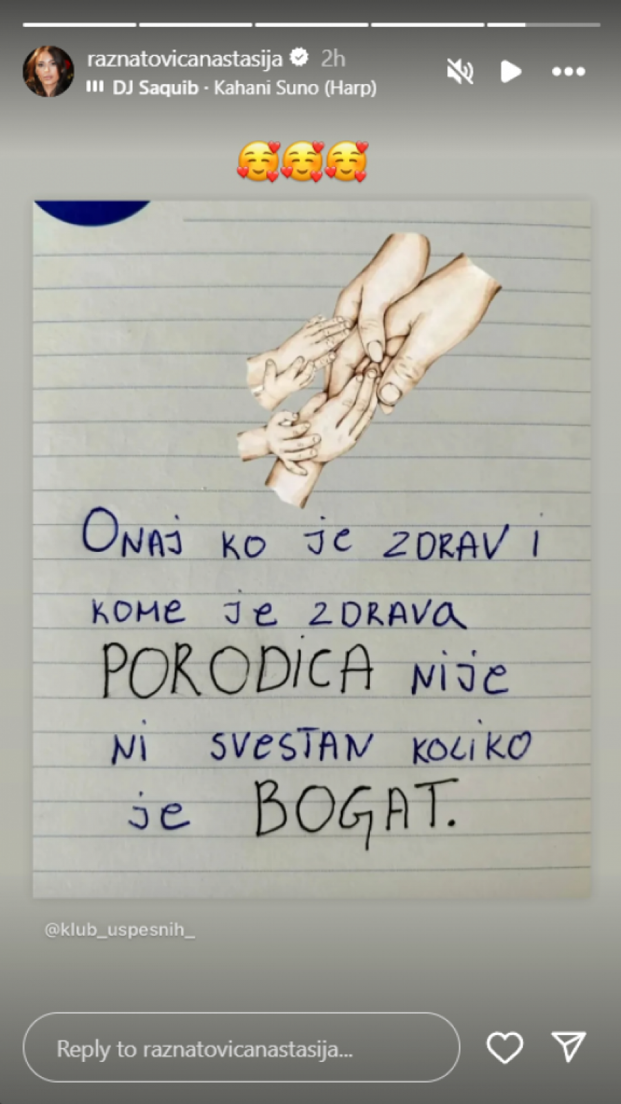 Naime, mlada muzička zvezda objavila je fotografiju koja je mnogima zagolicala maštu, te su sada otvorena brojna pitanja. Na pomenutoj slici vide se ruke mame, tate i bebe uz opis "Onaj ko je zdrav i kome je porodica zdrava, nije ni svestan koliko je bogat".
