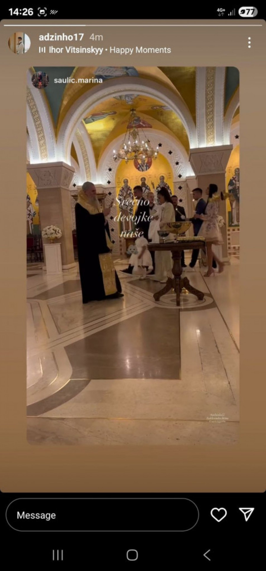 Sin Sanele Šaulić obradovao je celu porodicu, a  snimak iz crkve i podelila je supruga Mihajla Šaulića, Marina.