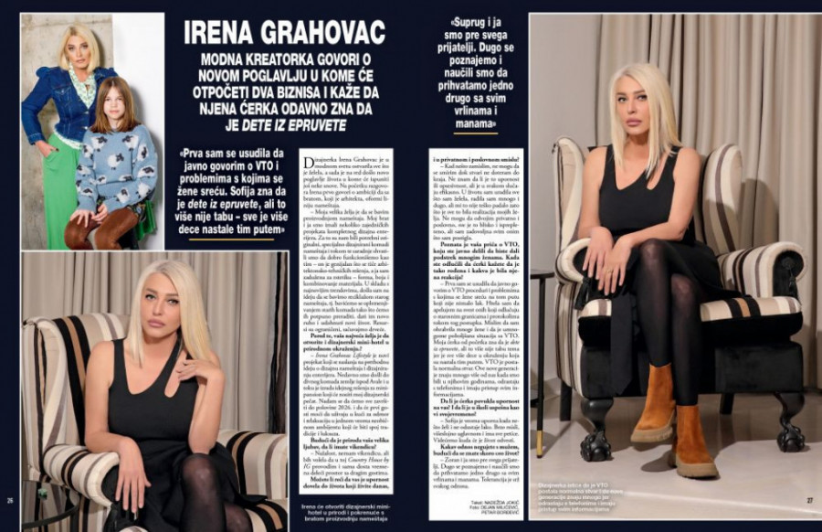 Irena Grahovac majka je devojčice po imenu Sofia. Dobila ju je posle višegodišnje borbe za potomstvo. Među prvima je u našoj zemlji govorila o VTO proceduri, kojoj se i sama podvrgla čak deset puta.
