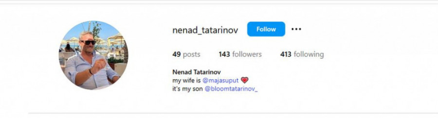 Ipak, šest godina kasnije ljubav se ugaslila, i svako je krenuo svojim putem. Međutim, opis na Nenadovom Instagram profilu i dalje je isti. Tu piše da je njegov sin Bloom, a supruga i dalje Maja Šuput.