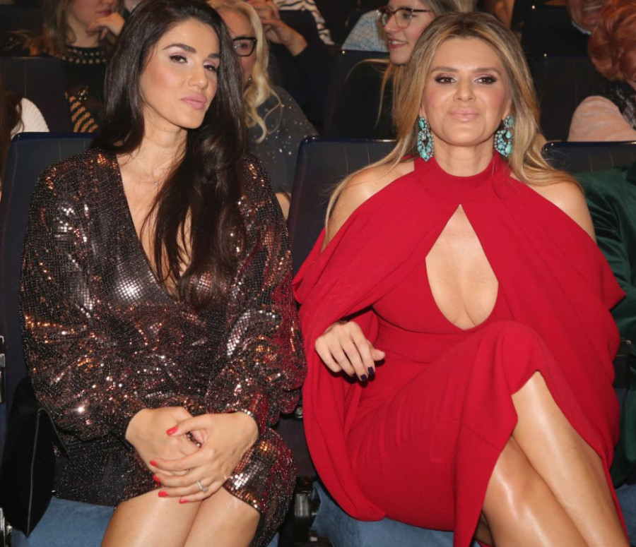 Melina je tada blistala u crvenoj dekoltiranoj haljini, dok se Emina odlučila za dvodelnu svetlucavu haljinu.