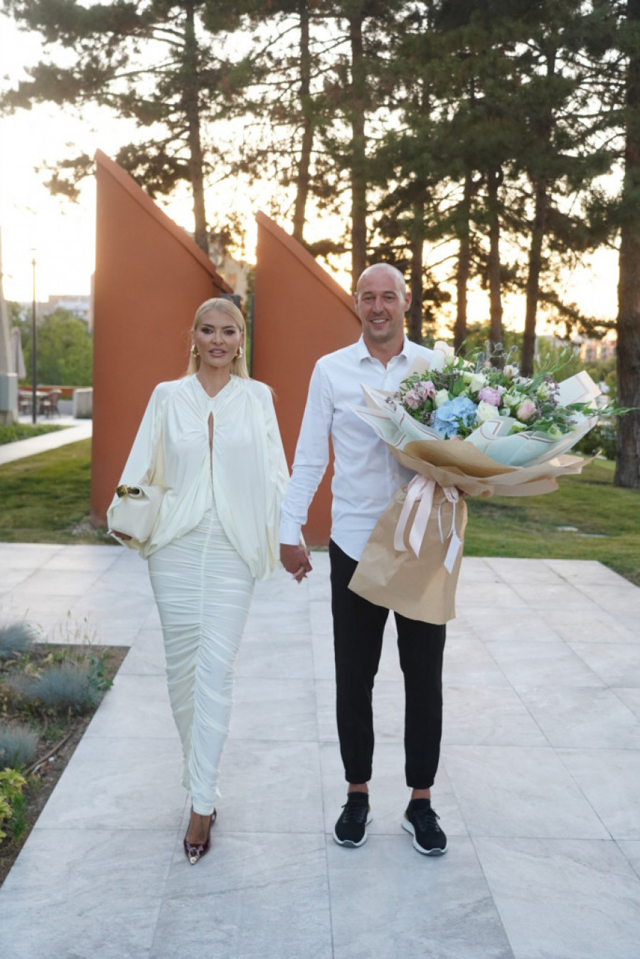 Nekadašnja direktorka marketinga FK "Partizan", a danas uspešna preduzetnica zablistala je u belom dok ju je suprug čvrsto držao za ruku.