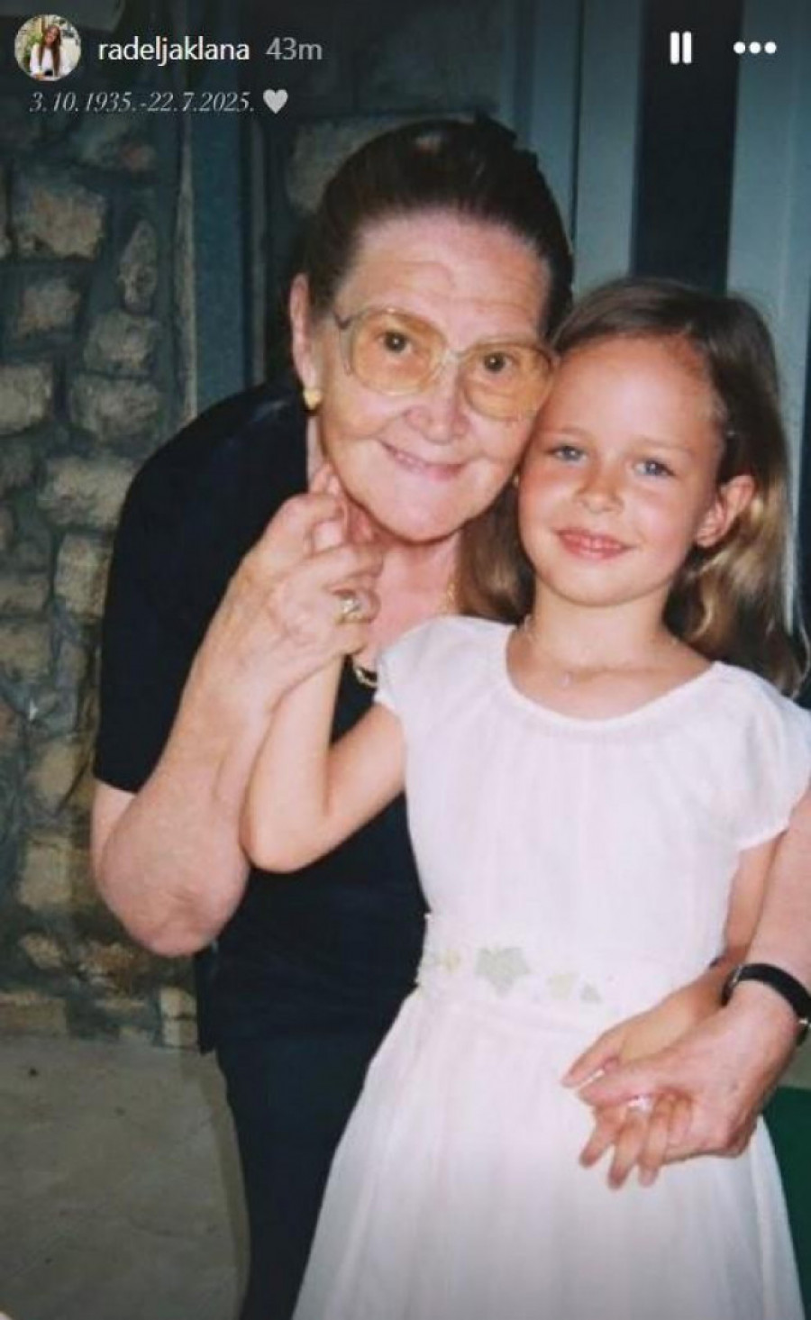 Na svom Instagram profilu Lana je objavila emotivnu fotografiju iz detinjstva, na kojoj je s bakom, uz datum Terezinog rođenja i smrti, čime je potvrdila tužnu vest.