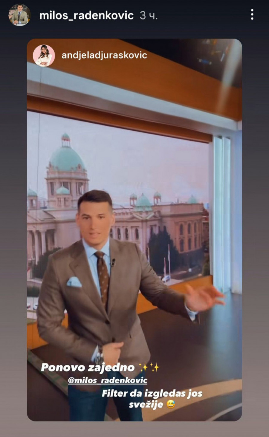“Ponovo zajedno”, poručio je na svom Instagram nalogu, uz snimak na kojem je sa koleginicom Anđelom Đurašković.