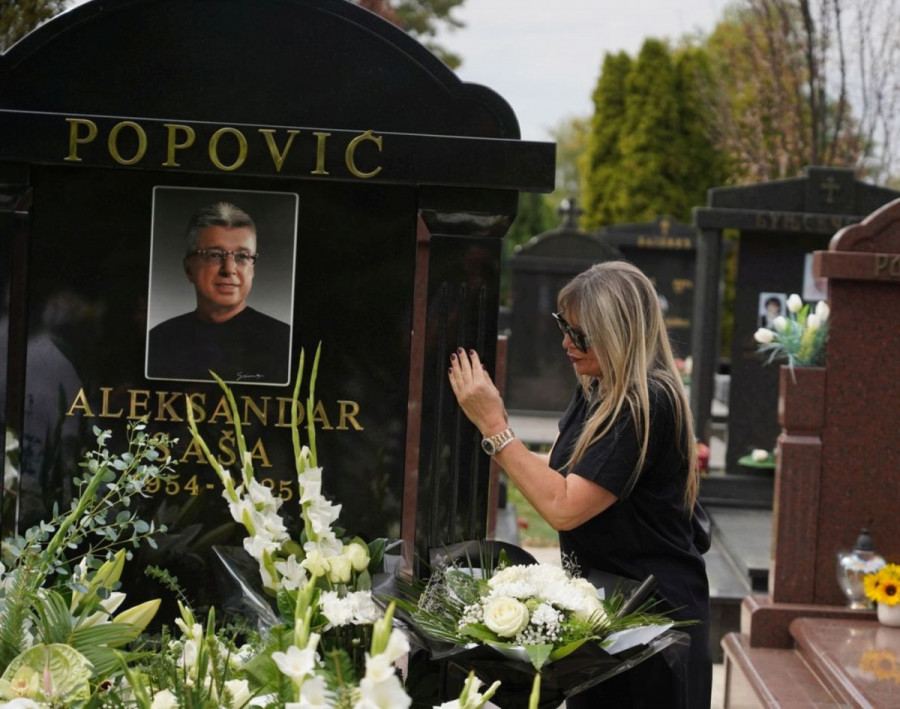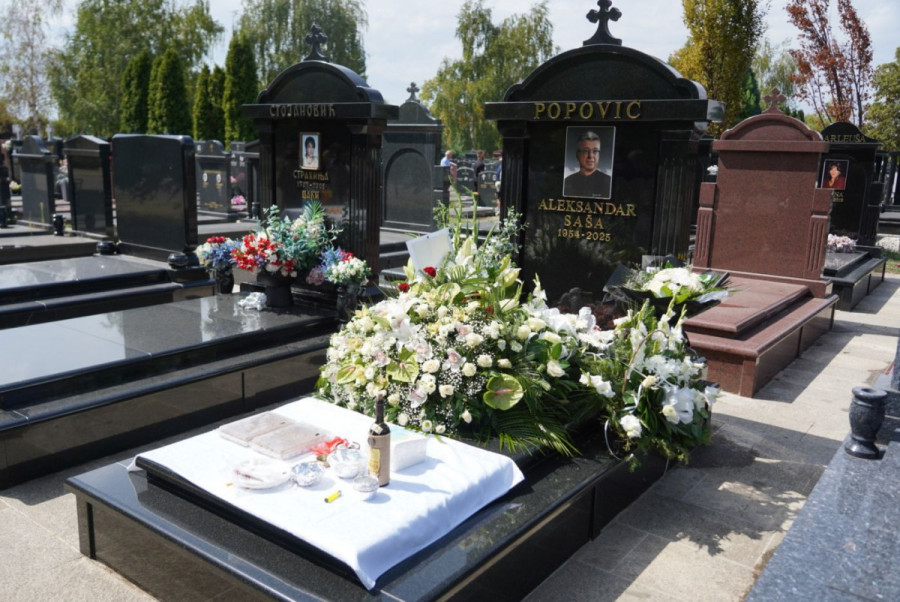 Ispod velikog mermernog spomenika sa Sašinom slikom na grob je položen venac od crvenih ruža, a figurice Belog anđela simbolizuju nadu u život posle smrti i pobedu nad smrću. Udovica Saše Popovića ispoštovala je sve običaje kako tradicija nalaže, a uskoro će i sveštenik održati pomen.