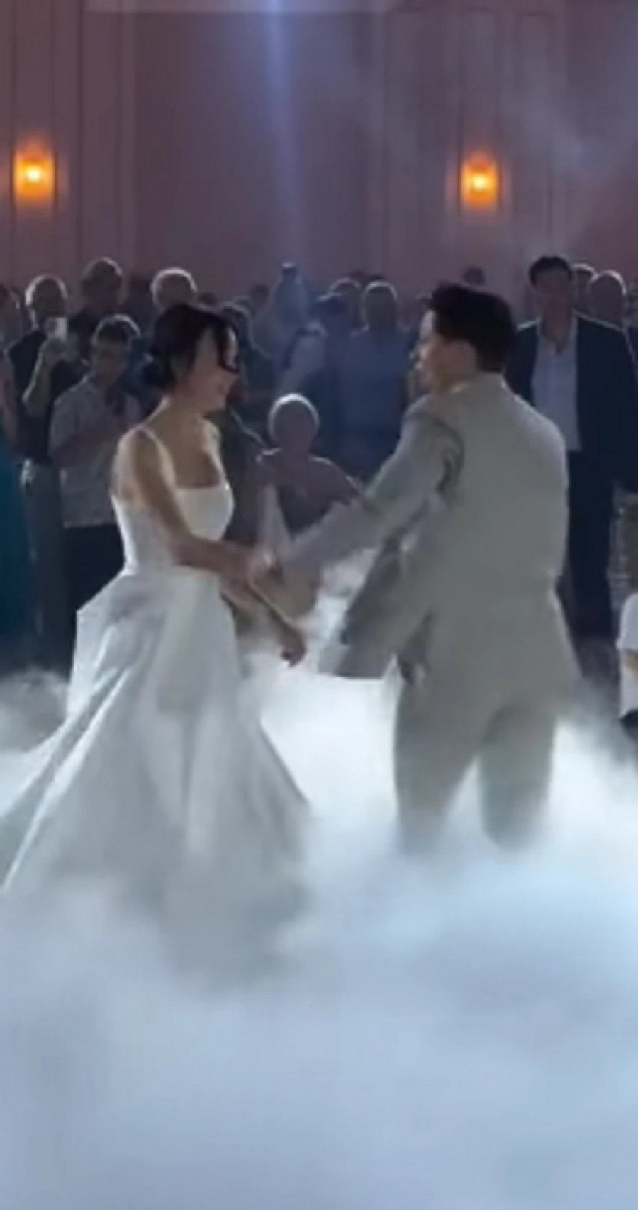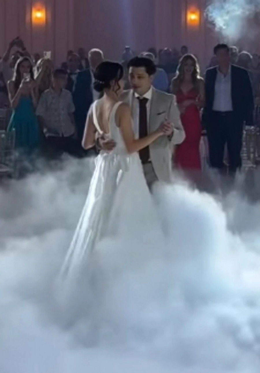 Mlada je blistala u dugoj uskoj beloj venčanici, a Marko je bio odeven u elegantno krem odelo. Supružnici su izveli romatični prvi ples uz pesmu: "Samo jednu ljubav imam".
