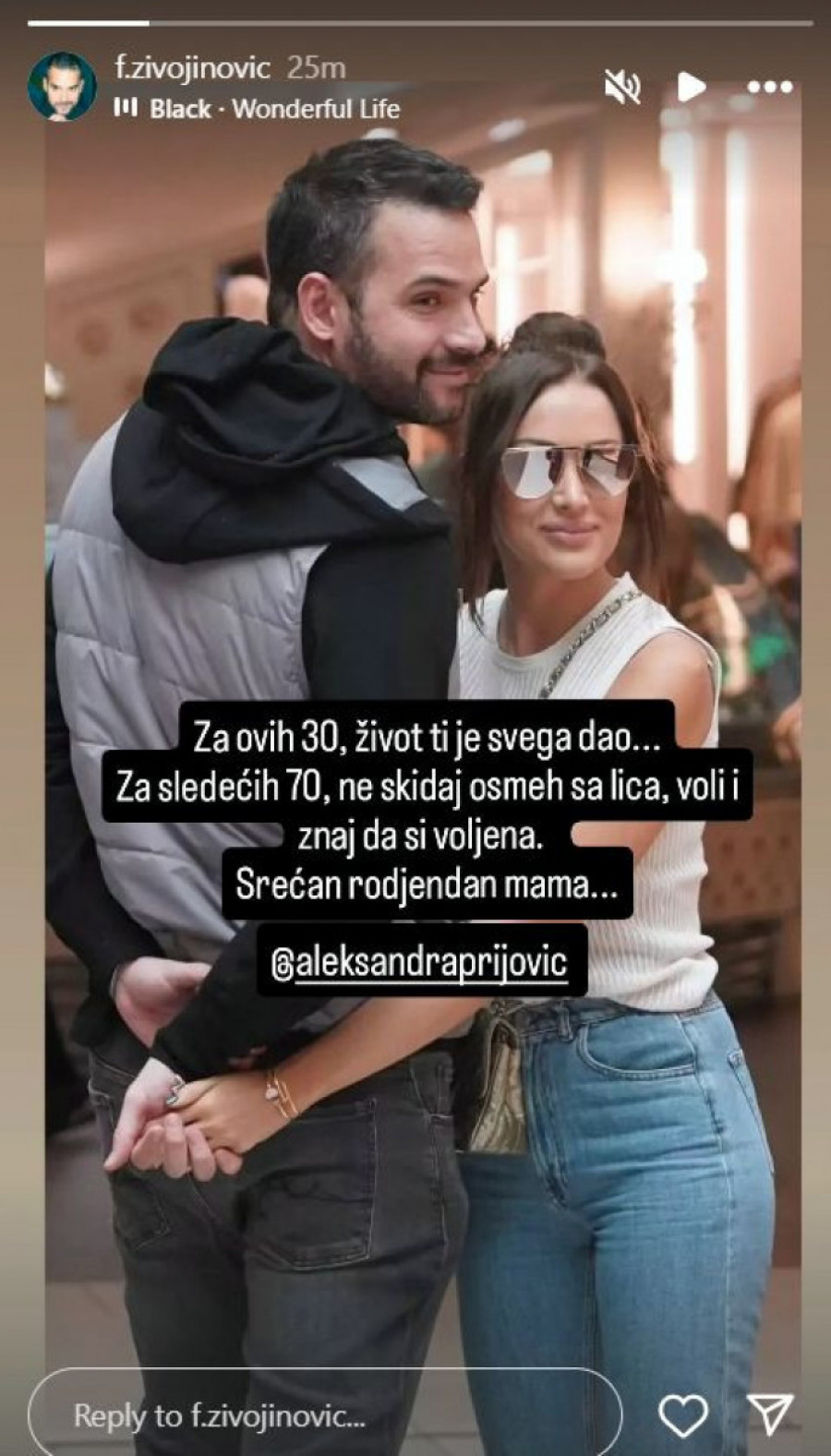 Sigurni smo da oni danas posebno uživaju, a da je Aleksandar napravio mami iznenađenje za pamćenje, mada će ovaj jubilarni rođendan svakako pamtiti po ćerkinom dolasku na svet što je upotpunilo njihovu porodičnu sreću.