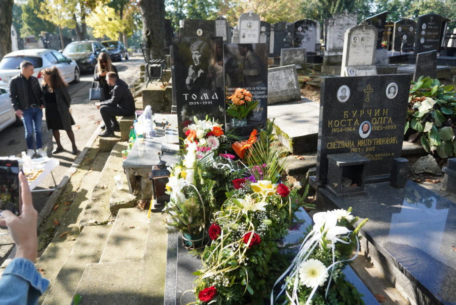 Na večnoj kući legendarnog muzičara okupili su se ljudi koji su cenili njegov lik i delo. Tomina udovica Gordana stigla je na groblje sa prijateljicom. Čim je izašla iz kola iznela je i veliki buket prirodnih ruža.