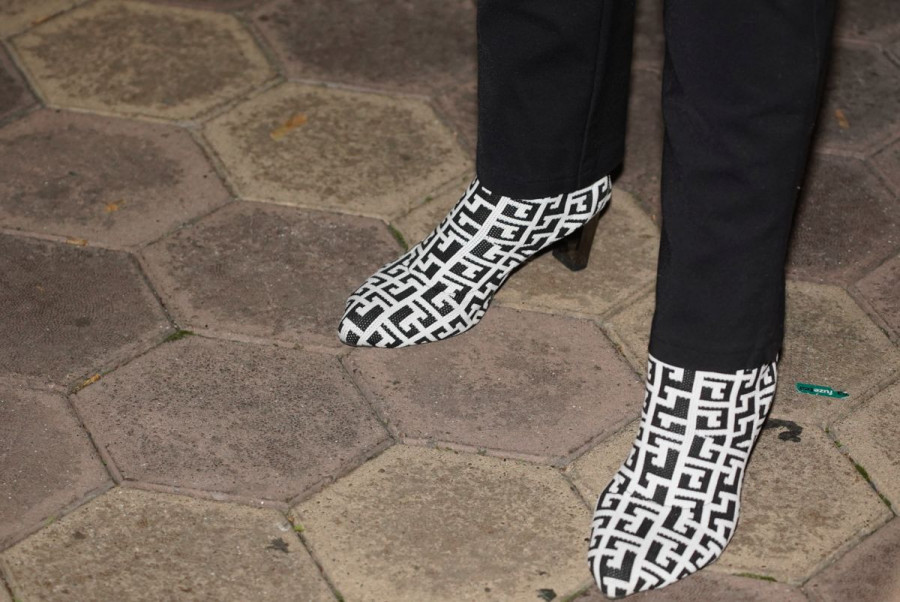 Uz crne pantalone ponela je brendirani sako i cipele istog dizajna, koje nisu mogle proći nezapaženo.