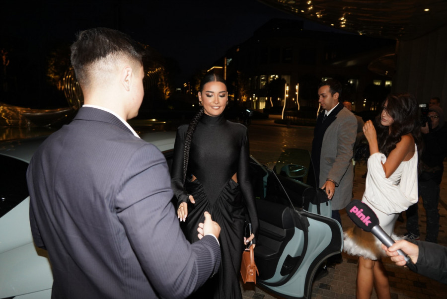 Muzička zvezde blistala je u elegantnoj crnoj, čipkanoj haljini koja u predelu kuka ima ogromnu mašnu od satena, a uz toaletu je savršeno uklopila crne čipkane čarape i bisernu ogrlicu, dok je devojka Andreja Taškovića pobrala sve komplimente u superlativu.