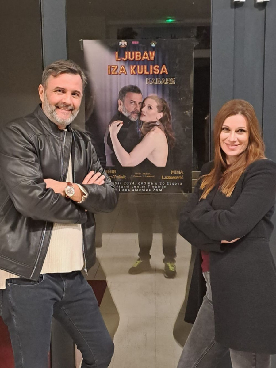 Glumac Vladimir Posavec Tušek zajedno sa Minom glumi u predstavi “Ljubav iza kulisa” koja – kako su pre godinu dana predstavlli kao jedinstven spoj kabarea, komedije i romantike.