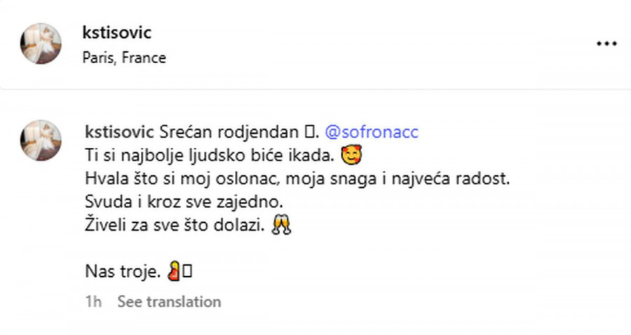 - Sređan rođendan, Ti si najbolje lujdsko biće ikada. Hvala što si moj oslonobac, moja snaga i največa radost. Svuda i kroz sve zajedno. Živeli za sve što dolazi. Nas troje- napisala Kosana i nagovestila da stiže novi član porodice.