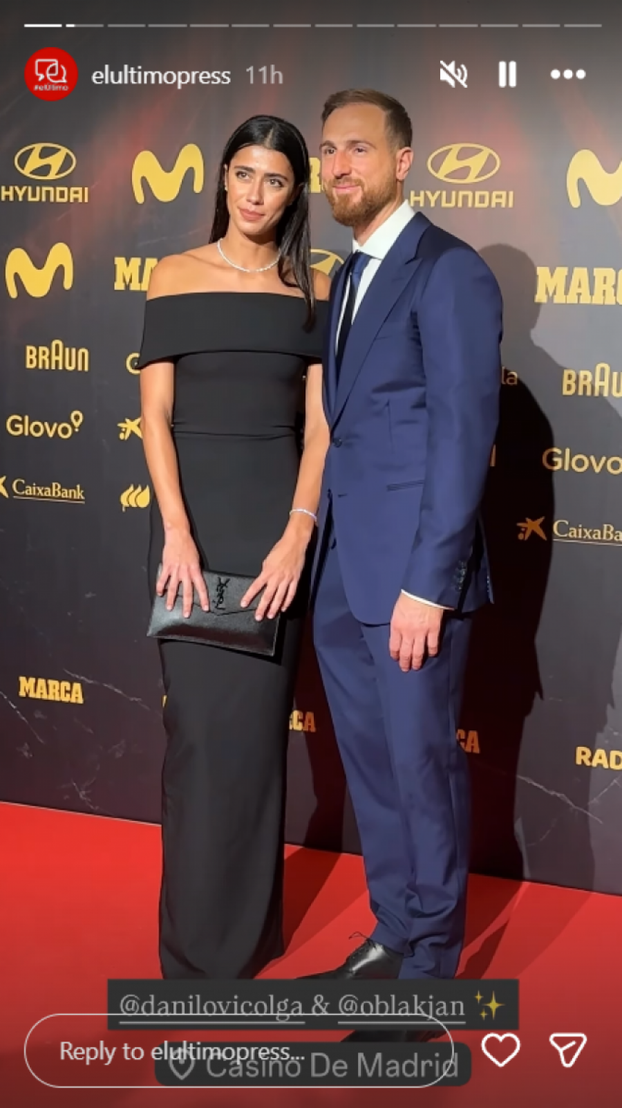 Olga Danilović nedavno je završila tenisku sezonu i odmah krenula put španske prestonice gde već nekoliko godina živi sa izabranikom Janom Oblakom. Sinoć je bilo posebno važno veče za sportski par. Naime, reprezentativac Slovenije je na gala večeri lista „Marka“ šesti put dobio priznanje Zamora namenjeno čuvaru mreže, koji prima najmanje golova u proseku u španskom šampionatu.