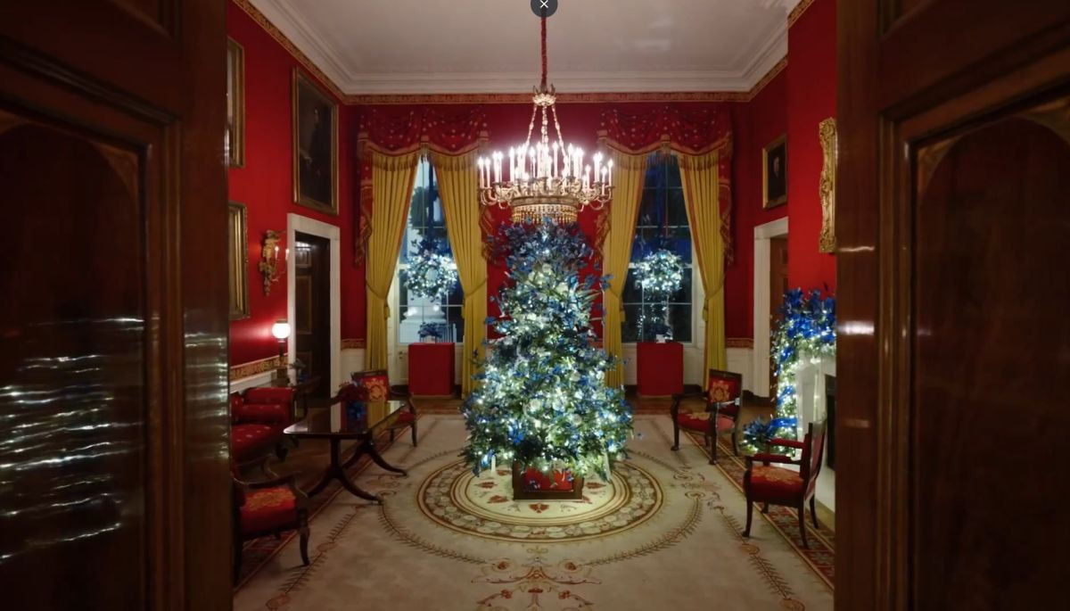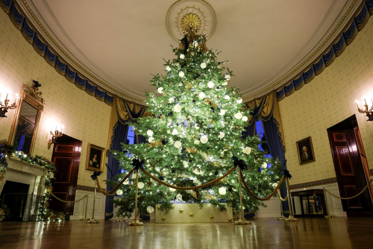 Bela kuća sjaji uz pomoć više od 10.000 plavih leptirova, 7.000 metara vrpce, 2.000 svetlosnih niti, 2.800 zlatnih zvezda, 200 metara venaca, 55 kg medenjaka, 51 božićnog drvca i 75 klasičnih venaca. Posetioci će ove godine moći da posete Belu kuću uz izmenjenu rutu.