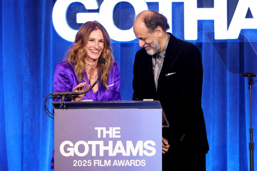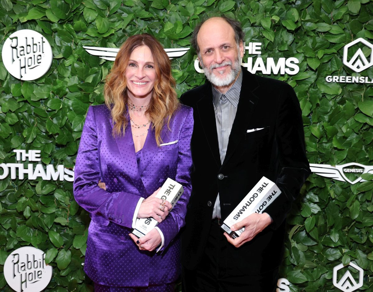 Džulija je izgledala bezvremeno u smelom ljubičastom odelu sa šarama, upotpunjenom raznobojnim, slojevitim ogrlicama i odgovarajućim prstenjem. Njena crvena kosa bila je u suptilnim talasima spuštenim niz ramena, a blistala je jednostavnom šminkom - karminom u boji kože i rumenilom boje breskve. Na događaju joj se pridružio reditelj Luka Gvadanjino.
