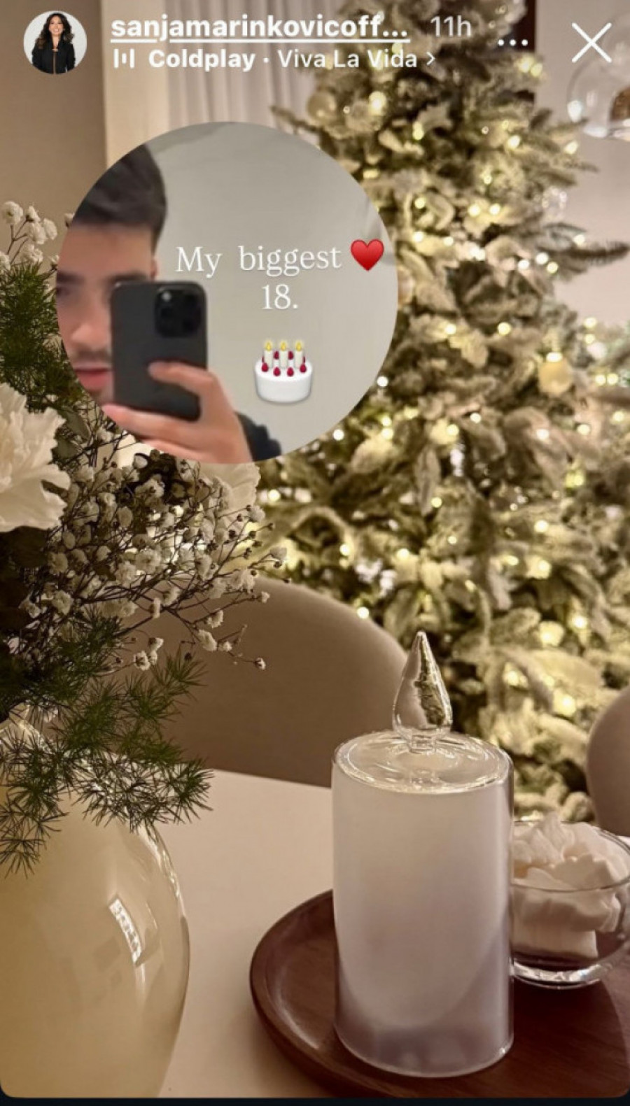 Praznična atmosfera u njihovom domu na Voždovcu dodatno je uveličala ovaj jubilarni rođendan. Domom dominira raskošna novogodišnja jelka okupana toplim belim lampicama, dok su detalji poput belog cveća i elegantnih dekoracija na stolu doprineli sofisticiranom ambijentu "tihog luksuza".