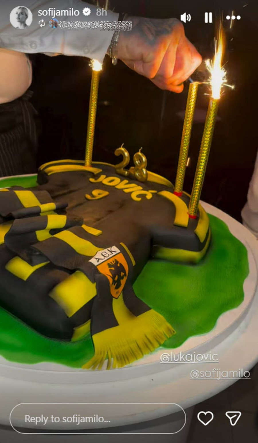 Posebnu pažnju privkula je nesvakidašnja torta, napravljena u obliku dresa, koja bi se dopala svakom ljubitelju fudbala. Luka je izabrao da njegova bude u bojama fudbalskog kluba AEK iz Atine, za koji trenutno nastupa.