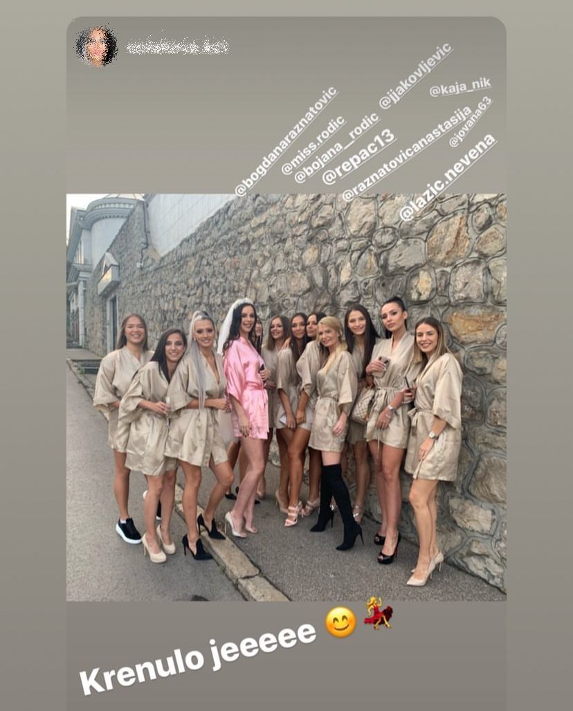 Devojačko veče i zabava do jutra za Bogdanu Rodić, verenicu Veljka Ražnatovića je započela. Društvo joj prave kuma, sestre, prijateljice, ali i Anastasija Ražnatović, iako se spekulisalo da zbog obaveza neće moći da dođe na zabavu.